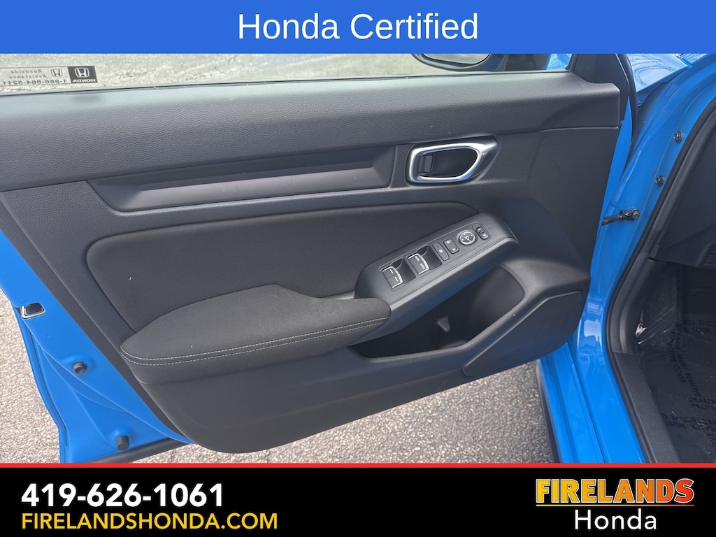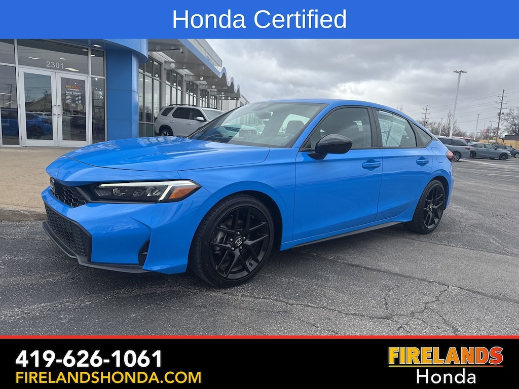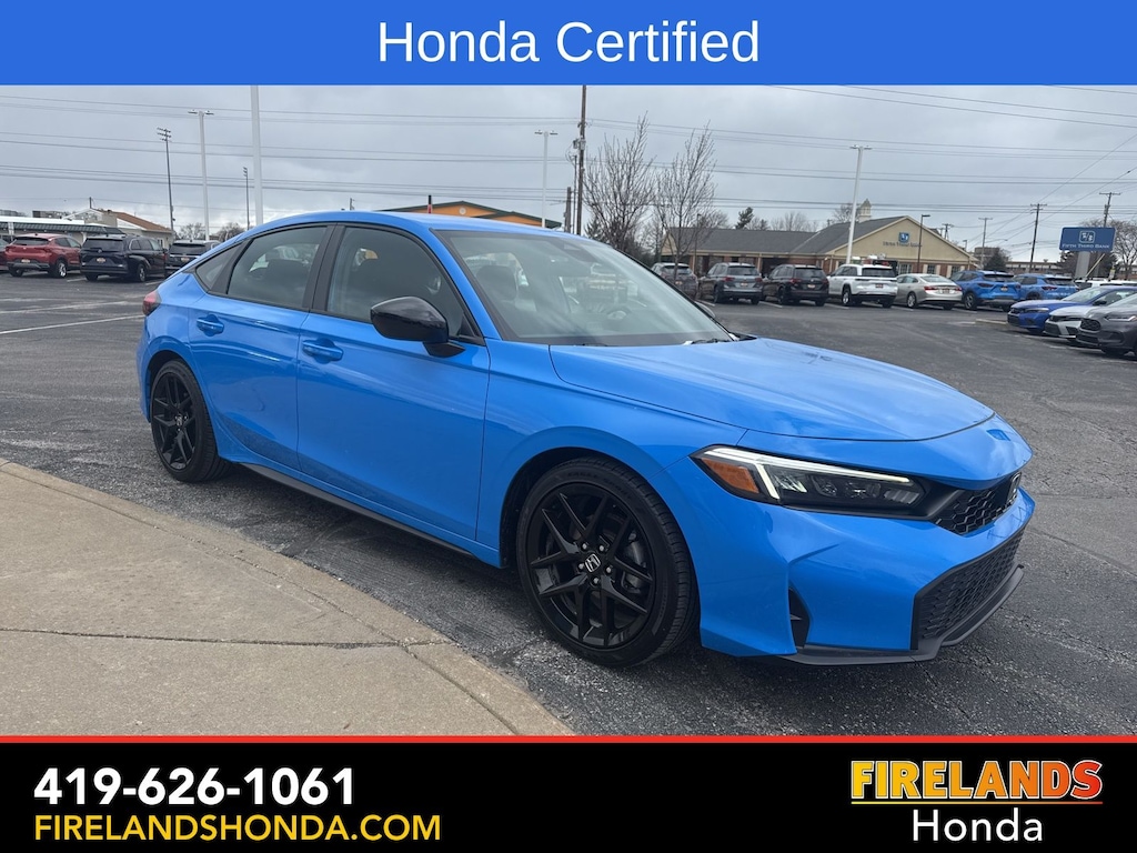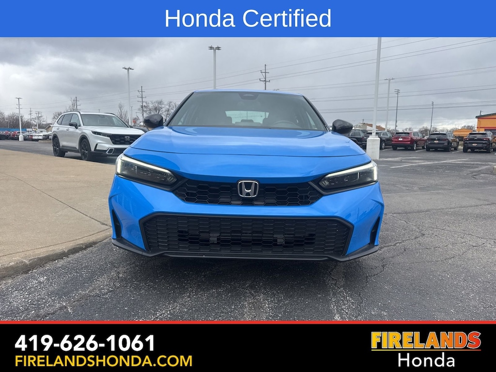 Firelands Honda is proud to offer this wonderful 2025 Honda Civic in Boost Blue Pearl. This Civic has been checked by our award winning service department. Hot features include: Bluetooth Hands Free, Back Up Camera, Remote Start, Local Trade, Adaptive Cruise Control, Balance of Factory Warranty, Service Records Available, Locally Owned New Car Trade, Lane Departure Warning, Apple Carplay/Android Auto, Blind Spot Detection, Automatic Emergency Braking, Forward Collision Warning, Rear Cross Traffic Alert, Honda Certified, Moonroof / Sunroof, One Owner. Certified.
