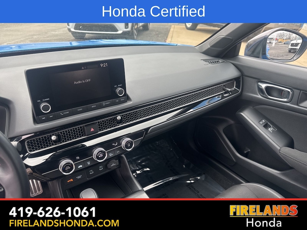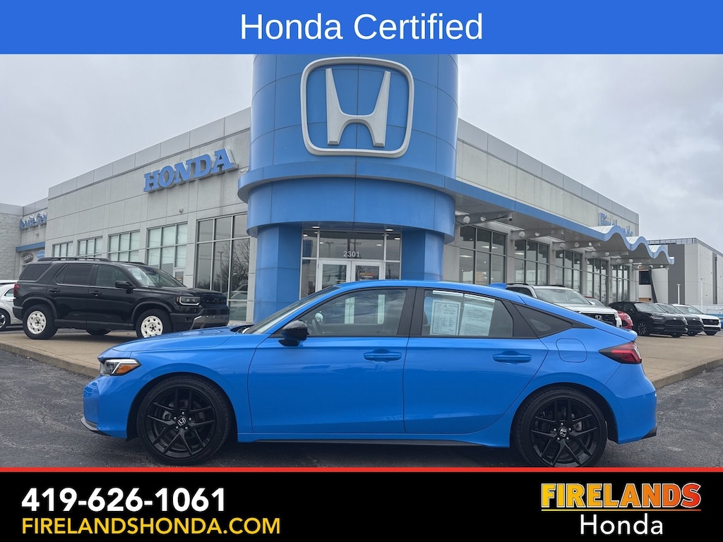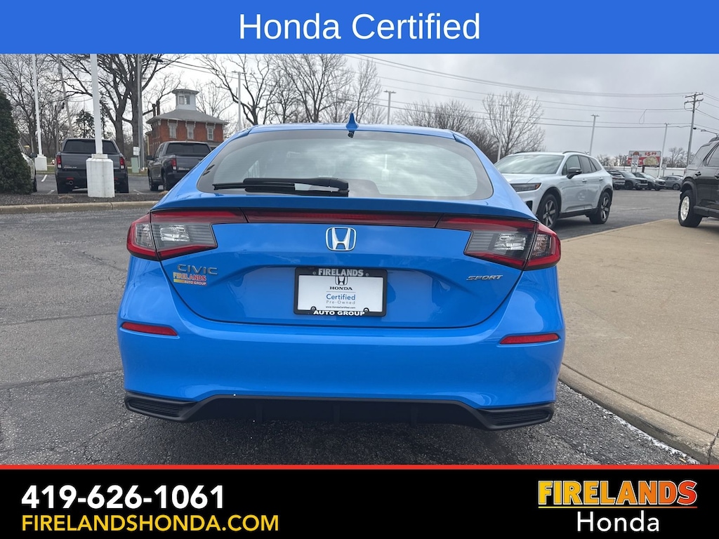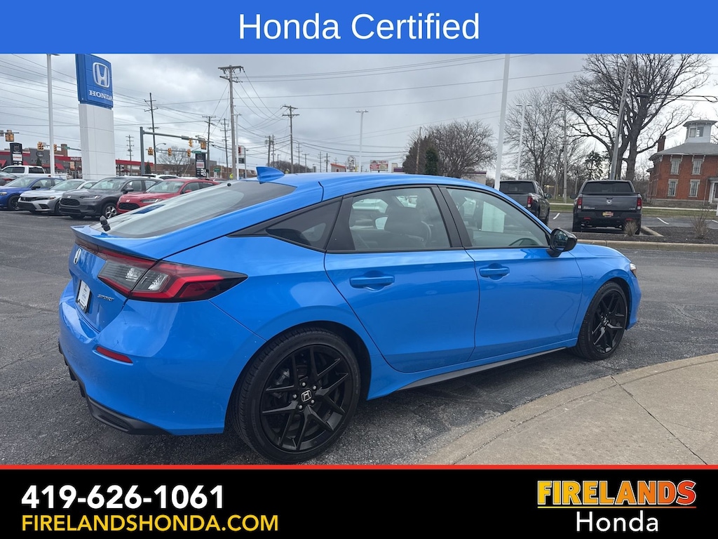 Firelands Honda is proud to offer this wonderful 2025 Honda Civic in Boost Blue Pearl. This Civic has been checked by our award winning service department. Hot features include: Bluetooth Hands Free, Back Up Camera, Remote Start, Local Trade, Adaptive Cruise Control, Balance of Factory Warranty, Service Records Available, Locally Owned New Car Trade, Lane Departure Warning, Apple Carplay/Android Auto, Blind Spot Detection, Automatic Emergency Braking, Forward Collision Warning, Rear Cross Traffic Alert, Honda Certified, Moonroof / Sunroof, One Owner. Certified.