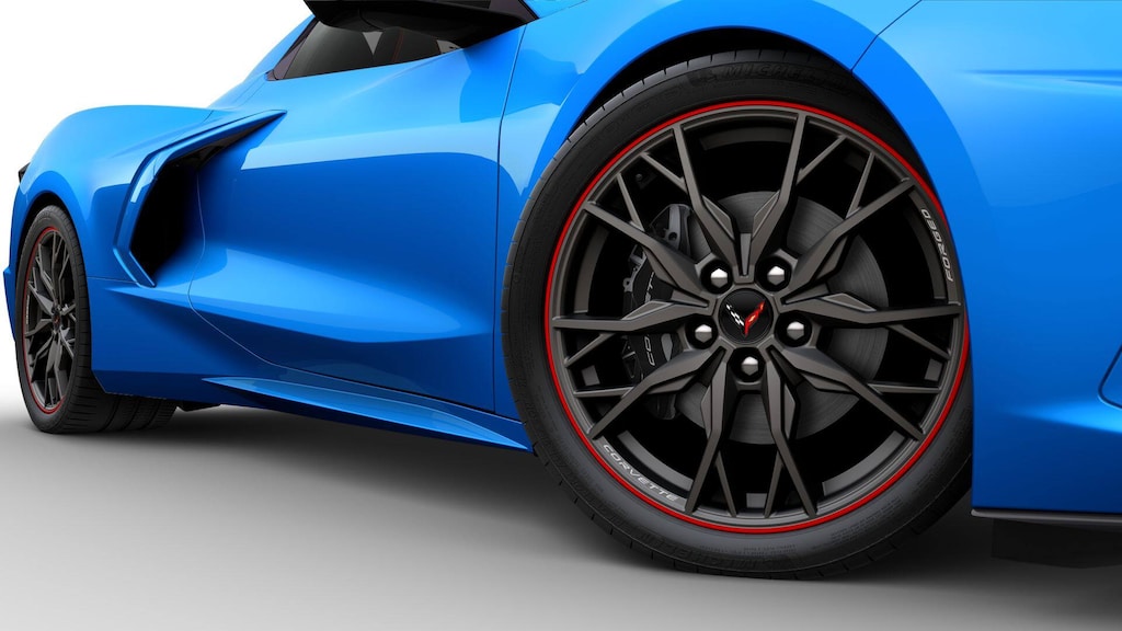 - Wheels: 19 x 8.5 Front and 20 x 11 Rear Midnight Gray Forged Aluminum with Red Stripe