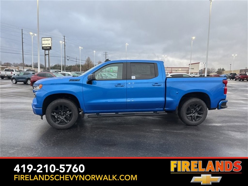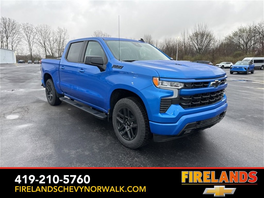 Riptide Blue Metallic 2025 Chevrolet Silverado 1500 RST 15/20 City/Highway MPG 4WD 10-Speed Automatic EcoTec3 6.2L V8 10-Speed Automatic, 4WD, Black Leather.