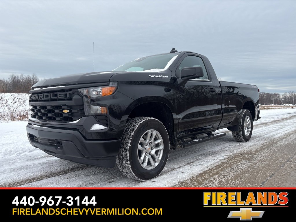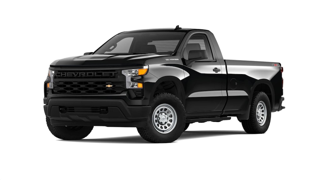 2025 Black Chevrolet Silverado 1500 WT 4WD 10-Speed Automatic EcoTec3 5.3L V8 10-Speed Automatic, 4WD, Jet Black Vinyl.