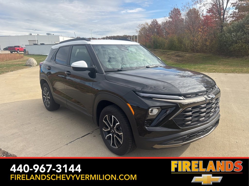 2025 Mosaic Black Metallic Chevrolet TrailBlazer ACTIV FWD CVT 1.3L Ecotec Turbo DOHC SIDI w/VVT AppleCar Play / Android Auto, Heated Seats, Rear / Backup Camera, Remote Start, Cruise Control, 8-Way Power Driver Seat Adjuster, AM/FM radio: SiriusXM, Driver Confidence Package, Evotex Seat Trim, Exterior Parking Camera Rear, Heated door mirrors, Heated steering wheel, Power driver seat, Power windows, Preferred Equipment Group 1SA, Rear Cross Traffic Alert, Rear Park Assist, Remote keyless entry, SiriusXM Trial Subscription, Steering wheel mounted audio controls, Summit White Two-Tone Roof, Wheels: 17 High Gloss Black Machined Aluminum.