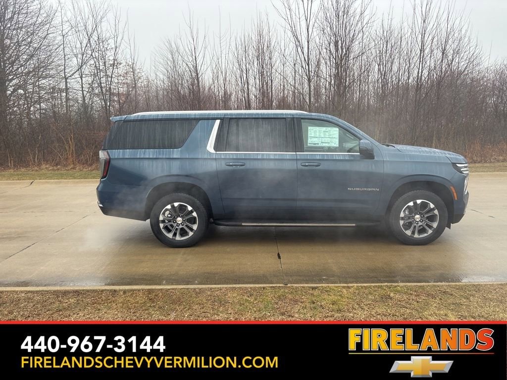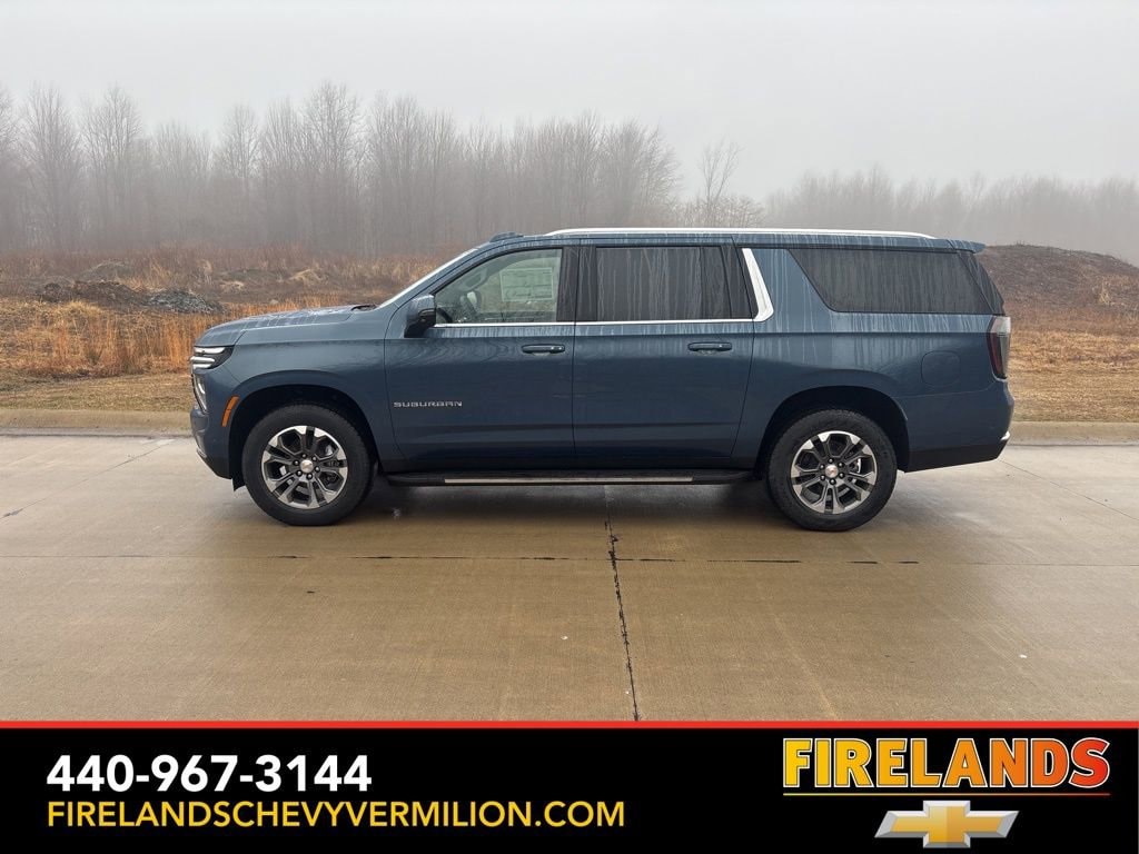 Thank you for allowing us to serve you. Our amazing hospitality starts with us opening the door for you with a smile and a humble handshake and ends with a full tank of gas on every vehicle...and sometimes a hug. Buy with confidence at Firelands Chevy of Vermilion, where you receive a copy of our detailed service report and a free vehicle history report by CarFax.2026 Lakeshore Blue Metallic Chevrolet Suburban LT 4WD 10-Speed Automatic with Overdrive EcoTec3 5.3L V8Whether you are looking for a Great Deal, a Great Price, or a Great Value, Firelands Chevrolet of VERMILION has you covered. Join us for the BEST Experience you will ever have. If we do not have what you are looking for, just let us know and we will find it. We have access to any make/model and also offer Certified Pre-Owned vehicles too. We can also locate vehicles with just about any option to include Sunroof, Moonroof, Navigation System, Heated Steering Wheel, HomeLink, LED Headlights, DVD Player, Rear Seat Entertainment, Backup Camera, Brake Assist, Automatic Emergency Braking, Blind Spot Monitoring, Cross Traffic Alert, Rear Cross Traffic Alert, Lane Departure Warning, Night Vision, Head-up Display, Automatic Parking, Cruise Control, Adaptive Cruise Control, Rain Sensing Wipers, Remote Engine Start, Memory Seat, Leather Seats, Heated Seats, Cooled Seats, Third (3rd) Row Seats, Steering Wheel Controls, Multi-zone Climate Control, Keyless Entry, Allow Wheels, Premium Wheels, Apple CarPlay, Android Auto, WiFi Hotspot, Premium Audio Sound System, Bluetooth® Audio, Hands-Free Audio, Portable Audio Connection, USB Port, Satellite Radio, Trailer Tow, Tow Hitch, 4WD, AWD, FWD, Disability Equipped, Keyless Start, Security System, Roof Rack, Dual Rear Wheels, Stability Control, and much more!