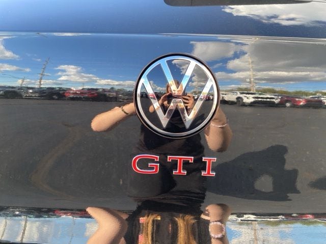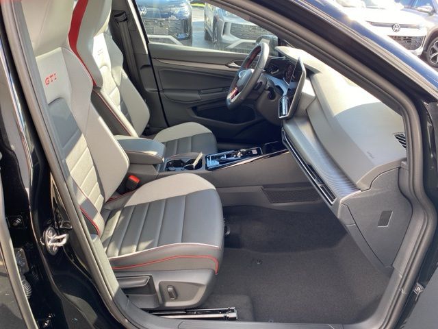 Mythos Black Metallic 2025 Volkswagen Golf GTI 2.0T SE HTD SEATS & NAVIGATION FWD 7-Speed DSG Automatic with Tiptronic 2.0L TSI DOHC Leather Seats, Heated Seats, Heated Steering Wheel, Sunroof/Moonroof, Panoramic Roof, Navigation System, CarPlay, Android Auto, Bluetooth, Backup Camera, Rain Sensing Wipers, Blind Spot Monitoring, Adaptive Cruise Control, Lane Departure Warning, Parking Sensors, Brake Assist, Steering Wheel Controls, Cruise Control, Keyless Start, Keyless Entry, Premium Audio, Satellite Radio, Premium/Alloy Wheels, Golf GTI 2.0T SE HTD SEATS & NAVIGATION, 4D Hatchback, 4-Wheel Disc Brakes, 9 Speakers, Actively Ventilated Front Seats, Air Conditioning, ArtVelours Seating Surfaces, Automatic temperature control, Brake assist, Compass, Delay-off headlights, Dual front impact airbags, Dual front side impact airbags, Emergency communication system: VW Car-Net Safe & Secure 5-year, Exterior Parking Camera Rear, Forward collision: FCW w/Autonomous Emergency Braking mitigation, Four wheel independent suspension, Front Bucket Seats, Fully automatic headlights, harman/kardon® Speakers, Heated door mirrors, Heated front seats, Heated Front Top Sport Seats, Heated steering wheel, Illuminated entry, Leather steering wheel, Low tire pressure warning, Navigation System, Overhead airbag, Panic alarm, Power driver seat, Power moonroof: Panoramic, Power passenger seat, Power windows, Radio data system, Rain sensing wipers, Rear seat center armrest, Remote keyless entry, Security system, Speed control, Speed-sensing steering, Spoiler, Sport steering wheel, Steering wheel mounted audio controls, Variably intermittent wipers, VW Care, Wheels: 18" 2-Tone Diamond-Turned Alloy.