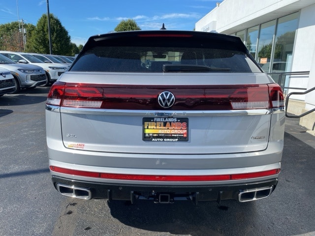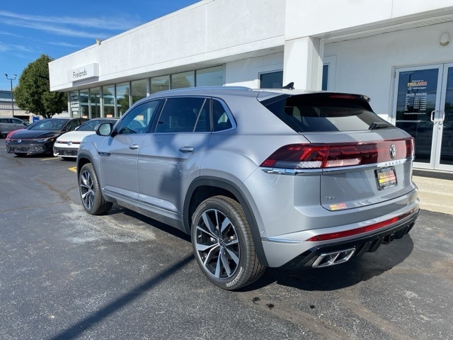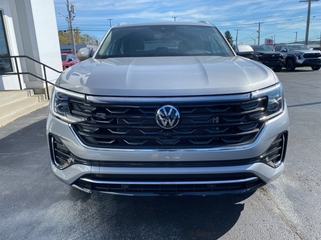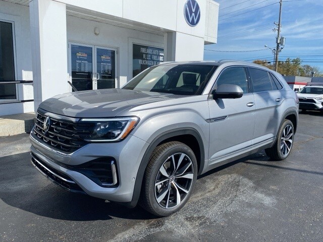 Silver Mist Metallic 2026 Volkswagen Atlas Cross Sport 2.0T SEL Premium R-Line AWD & TRAILER HITCH AWD 8-Speed Automatic with Tiptronic 2.0L TSI 4WD/4X4/AWD, Leather Seats, Heated Seats, Heated Steering Wheel, Heated & Cooled Seats, Sunroof/Moonroof, Panoramic Roof, Remote Start, Navigation System, CarPlay, Android Auto, Bluetooth, Backup Camera, Rain Sensing Wipers, Blind Spot Monitoring, Adaptive Cruise Control, Lane Departure Warning, Parking Sensors, Automatic Parking, Brake Assist, Steering Wheel Controls, Cruise Control, Keyless Start, Keyless Entry, Premium Audio, Trailer Hitch, Atlas Cross Sport 2.0T SEL Premium R-Line AWD & TRAILER HITCH, AWD, Titan Black w/Blue Underlay w/Perforated Vienna Leather Seating Surfaces, 4-Wheel Disc Brakes, 4-Wheel Independent Suspension, ABS brakes, AM/FM radio: SiriusXM with 360L, Auto High-beam Headlights, Auto-dimming Rear-View mirror, Automatic temperature control, Brake assist, Compass, Driver door bin, Electronic Stability Control, Exterior Parking Camera Rear, First Aid Kit, Front Bucket Seats, Front Center Armrest, Front dual zone A/C, Front fog lights, Front reading lights, Fully automatic headlights, harman/kardon® Speakers, Heads-Up Display, Heated door mirrors, Heated front seats, Heated rear seats, Heated steering wheel, Illuminated entry, Leather steering wheel, Low tire pressure warning, Memory seat, Navigation System, Outside temperature display, Overhead airbag, Panic alarm, Passenger door bin, Passenger vanity mirror, Perforated Vienna Leather Seating Surfaces, Power driver seat, Power Liftgate, Power moonroof: Panoramic, Power passenger seat, Power windows, Rain sensing wipers, Rear audio controls, Rear seat center armrest, Rear window wiper, Remote keyless entry, Security system, Speed control, Speed-sensing steering, Spoiler, Sport steering wheel, Steering wheel mounted audio controls, Tachometer, Tilt steering wheel, Traction control, Trip computer, Ventilated front seats, Wheels: 21" 2-Tone Machined Alloy.