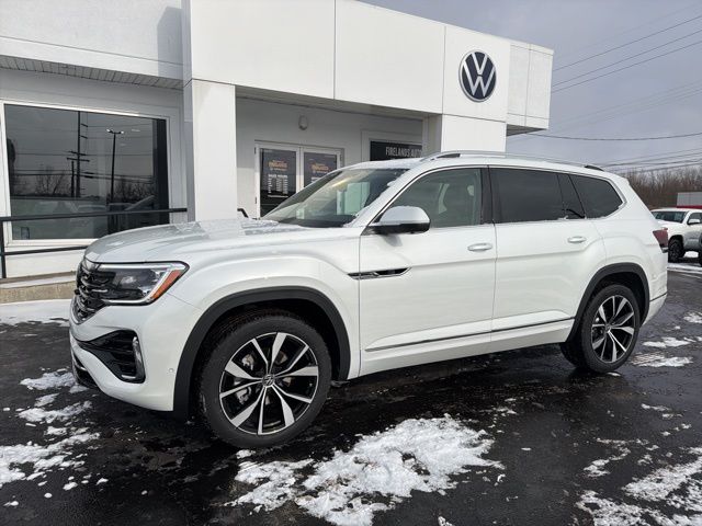 Opal White Pearl 2026 Volkswagen Atlas 2.0T SEL Premium R-Line AWD 8-Speed Automatic with Tiptronic 2.0L TSI 4WD/4X4/AWD, Leather Seats, Heated Seats, Heated Steering Wheel, Heated & Cooled Seats, Sunroof/Moonroof, Panoramic Roof, Remote Start, Navigation System, CarPlay, Android Auto, Bluetooth, Backup Camera, Rain Sensing Wipers, Blind Spot Monitoring, Adaptive Cruise Control, Lane Departure Warning, Parking Sensors, Automatic Parking, Brake Assist, Steering Wheel Controls, Cruise Control, Keyless Start, Keyless Entry, Power Lift Gate, Premium Audio, Third Row Seats, Premium/Alloy Wheels, Trailer Hitch, Atlas 2.0T SEL Premium R-Line, AWD, 3rd row seats: split-bench, Automatic temperature control, Brake assist, Bumpers: body-color, Compass, Dual front side impact airbags, Emergency communication system: VW Car-Net Safe & Secure 5-year, Exterior Parking Camera Rear, First Aid Kit, Front dual zone A/C, Front fog lights, Fully automatic headlights, Garage door transmitter: HomeLink, harman/kardon® Speakers, Heads-Up Display, Heated & Actively Ventilated Front Bucket Seats, Heated door mirrors, Heated front seats, Heated rear seats, Heated steering wheel, Heavy Duty Trunk Liner w/VW CarGo Blocks, Illuminated entry, Leather steering wheel, Low tire pressure warning, Memory seat, Outside temperature display, Perforated Vienna Leather Seating Surfaces, Power driver seat, Power Liftgate, Power passenger seat, Radio data system, Radio: MIB3 Discover Pro w/Navigation, Rain sensing wipers, Remote keyless entry, Roadside Assistance Kit, Rubber Mats Kit (2-Row), Seat Inserts w/Diamond-Pattern Stitching, Security system, Speed-sensing steering, Spoiler, Steering wheel mounted audio controls, Telescoping steering wheel, Trailer Hitch Extras, Turn signal indicator mirrors, Ventilated front seats, Volkswagen Logo Puddle Lights, VW Care, Wheels: 21" 2-Tone Machined Alloy.