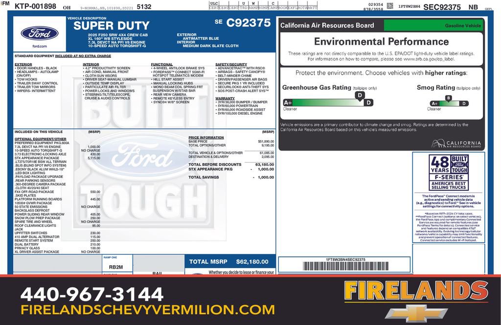 Discover the ultimate workhorse in the 2025 Ford F-250SD XL. This rugged and capable truck is ready to take on any task you throw its way. With its powerful 7.3L V8 engine, 10-speed automatic transmission, and 4WD capabilities, this F-250 is built to conquer any terrain.- One Owner- Accident Free CarFax- Locally Owned New Car Trade- Garage Stored- AWD / 4WD- Rear / Backup Camera- Cruise Control- Steering Wheel Controls- Bluetooth Audio- STX Appearance Package- 360-Degree Camera Package- FX4 Off-Road Package- GVWR: 10,000 Lb Payload Package- GVWR: F-250 >10K Package- Snow Plow Prep Package- XL Driver Assist PackageThis F-250 is packed with premium features that will make your driving experience more comfortable and convenient. Enjoy the convenience of SYNC 4, the safety of Pre-Collision Assist and Automatic Emergency Braking, and the capability of the FX4 Off-Road Package with Hill Descent Control and off-road-tuned shock absorbers.The exterior of this F-250 is equally impressive, with a bold and rugged styling that commands attention. The body-color front and rear bumpers, LED box lighting, and 18-inch Ebony Black painted aluminum wheels give this truck a distinctive and premium appearance.Step inside the cabin, and you'll be greeted by a spacious and well-appointed interior. The cloth 40/20/40 split bench seat offers ample room and comfort, while the color-coordinated full carpet and floor mats provide a touch of luxury. The power-sliding rear window with defrost and the platform running boards add even more functionality and convenience.Whether you're hauling heavy loads, traversing rough terrain, or simply need a reliable and capable work truck, the 2025 Ford F-250SD XL is the perfect choice. Experience the power, versatility, and premium features that make this truck a true standout in its class. Visit our showroom today and let us demonstrate how this F-250 can exceed your expectations.
