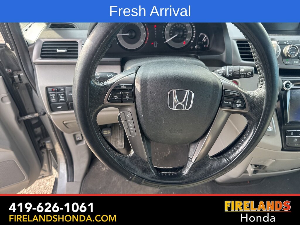 Firelands Honda is proud to offer this attractive 2016 Honda Odyssey in Lunar Silver Metallic. This Odyssey has been checked by our award winning service department. Hot features include: Bluetooth Hands Free, Back Up Camera, Navigation / GPS, Heated Leather Seats, 3rd Row Seating, 7 Passenger Seating, Power Liftgate, Captains Chairs.