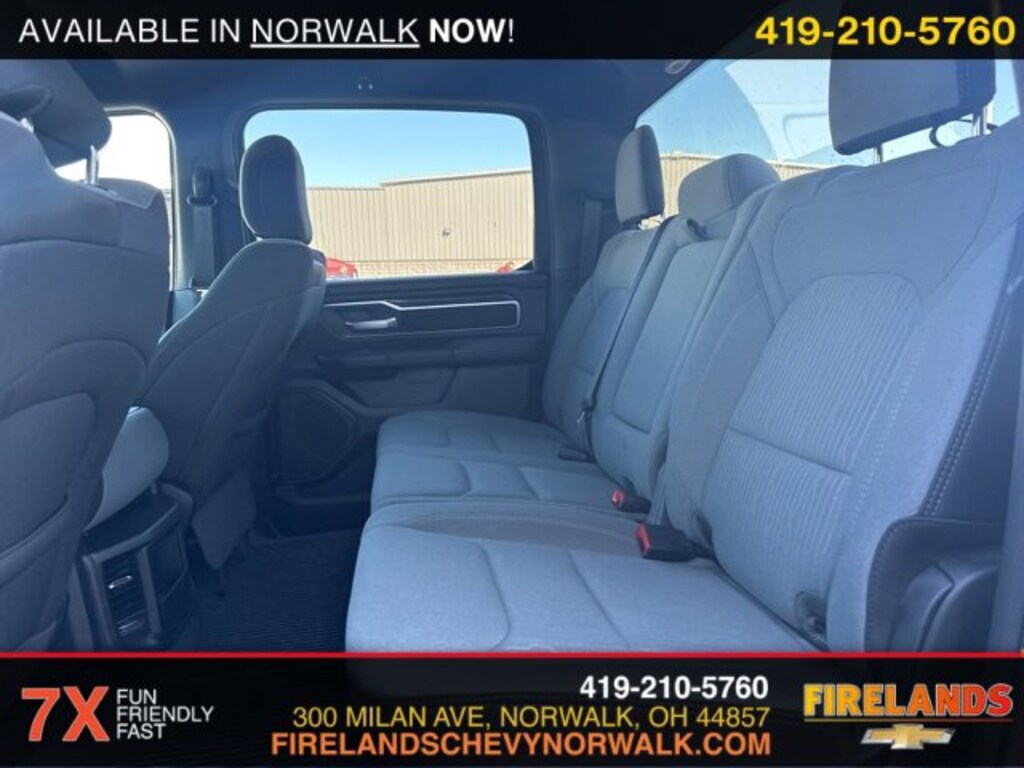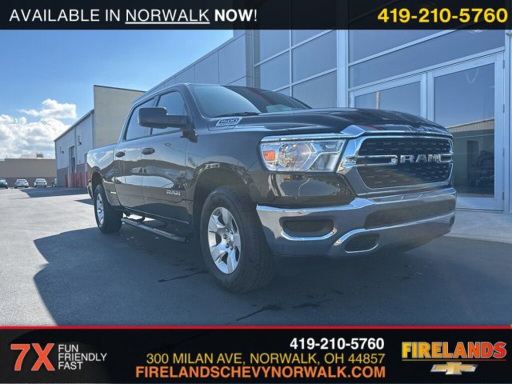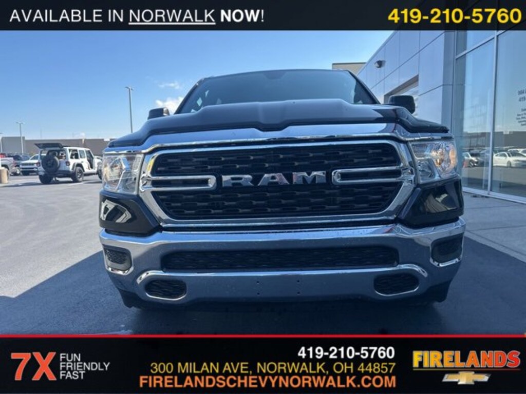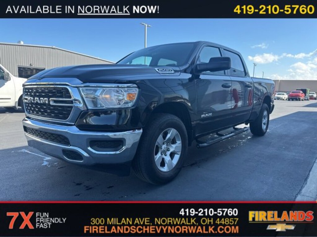 Firelands CJDR is proud to offer this attractive 2024 Ram 1500 in Diamond Black Crystal Pearlcoat. Service Records Available, Bluetooth Hands Free, 4x4, Apple Carplay/Android Auto, Fog Lights, Like New, One Owner, Accident Free CarFax, AWD / 4WD, Remote Start, Cruise Control, Steering Wheel Controls, Car Bravo Certified, 1-Owner, Clean CarFax, 4WD / 4x4 / AWD, CarPlay, Android Auto, Bluetooth, Backup Camera, Parking Sensors, Multi Zone Climate Control, Keyless Start, Keyless Entry, Back Up Camera, Running Boards, 5.7L V8, Tonneau Cover, Long Bed, 6.5ft Bed, Active Noise Control System, Big Horn Badge, Bumpers: chrome, Convex Wide-Angle Exterior Mirror Insert, Exterior Mirrors w/Heating Element, Heated door mirrors, HEMI Badge, Power door mirrors, Quick Order Package 27Z Big Horn, Radio data system, RAM Grille Badge - Chrome, Rear step bumper, Rear Wheelhouse Liners, Wheels: 18 x 8 Cast-Aluminum Painted.CARFAX One-Owner. Clean CARFAX.Big Horn/Lone Star HEMI 5.7L V8 Multi Displacement VVT eTorque 4WD 8-Speed AutomaticOdometer is 15276 miles below market average! Priced below KBB Fair Purchase Price!At Firelands Chrysler Dodge Jeep Ram, we're known for our selection of new and used Jeep, Dodge, Ram or Chrysler models, but we have so many more services. With years of experience helping Avon Lake, Willard, Port Clinton and Fremont drivers with everything related to their Jeep, Dodge, Ram, Chrysler model, we're your go-to resource, whether it's service, financing, and more. What you can count on is a team of enthusiasts standing in your corner to help with every part of the ownership process. At Firelands Chrysler Dodge Jeep Ram, We're About More Than New Jeep, Dodge, Ram, Chrysler Models It's true that we have a variety of new and used Jeep Cherokee, Jeep Grand Cherokee, Dodge Charger, Ram 1500 and Chrysler Pacifica, but we also provide you with customer service when you bring your vehicle in for repairs and maintenance, and by offering help with financing. We are a full-service dealership that assists you with every step of the ownership process. Our team at Firelands Chrysler Dodge Jeep Ram knows that you have a lot going on, and we're here to help lessen the burden. Take the Short Drive from Avon Lake, Willard, Port Clinton or Fremont to Firelands Chrysler Dodge Jeep Ram With our pressure-free environment, drivers from Avon Lake, Willard, Port Clinton, Fremont, and beyond are encouraged to take advantage of our services that benefit them best. We know car-ownership can be a large undertaking, so we are here to offer advice and help with all things Jeep, Dodge, Ram and Chrysler. Explore what our Sandusky dealership has to offer and contact us with any questions that you have. We look forward to hearing from you! Call 419-621-0210 for more details or shop 24/7 at www.firelandscdjr.com.