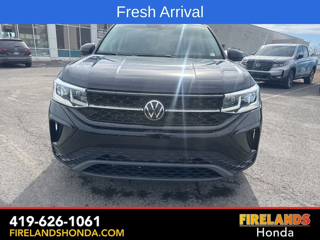 Firelands Honda is proud to offer this terrific-looking 2024 Volkswagen Taos in Deep Black Pearl. This Taos has been checked by our award winning service department. Hot features include: Bluetooth Hands Free, Back Up Camera, Remote Start, Adaptive Cruise Control, Balance of Factory Warranty, Service Records Available, Heated Leather Seats, Lane Departure Warning, Apple Carplay/Android Auto, Blind Spot Detection, Automatic Emergency Braking, Forward Collision Warning, Wireless Charging Pad, Panoramic Moonroof, Clean CARFAX, One Owner, No Accidents, Heated Steering Wheel.